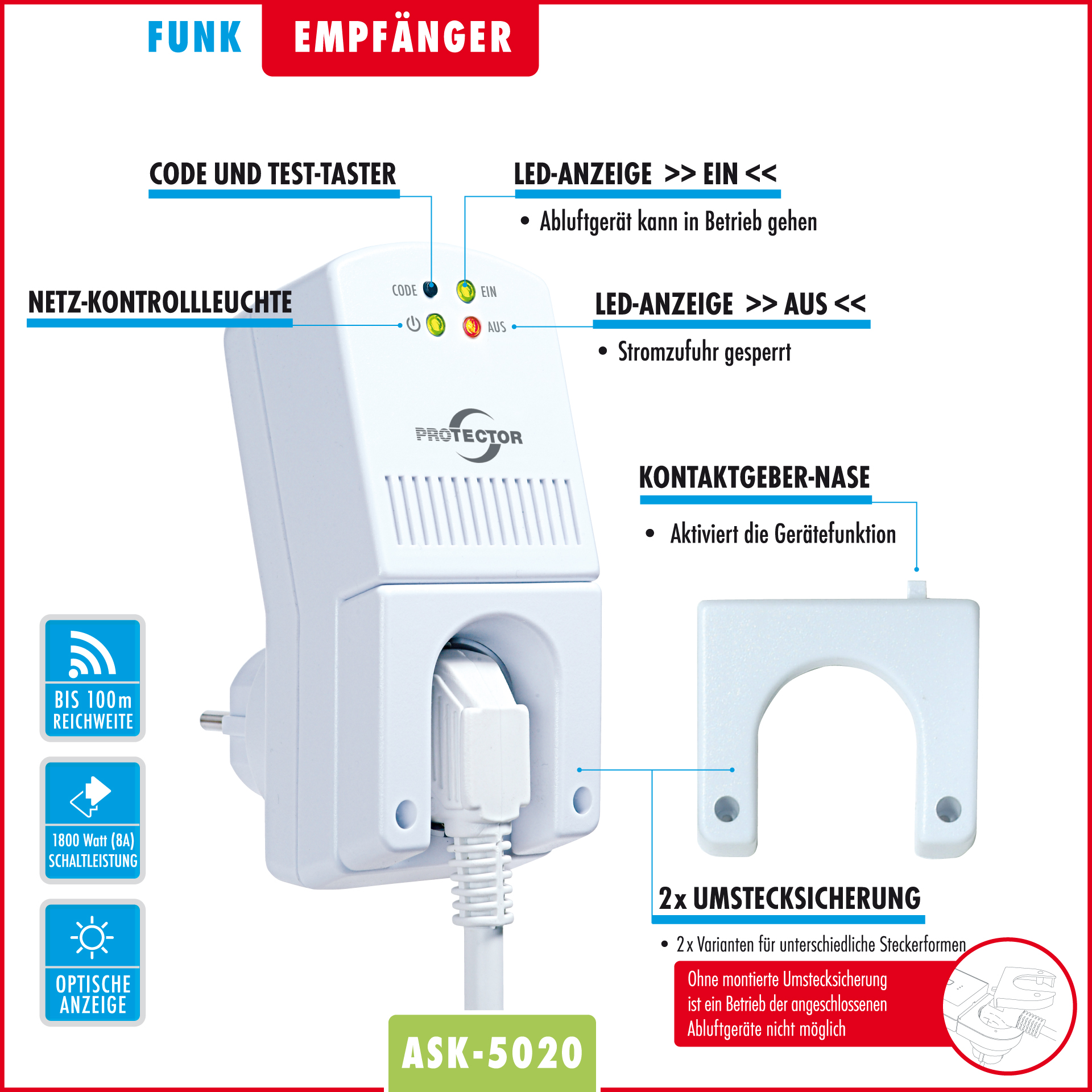 1 x Schaltgerät mit Umstecksicherung (Empfänger)